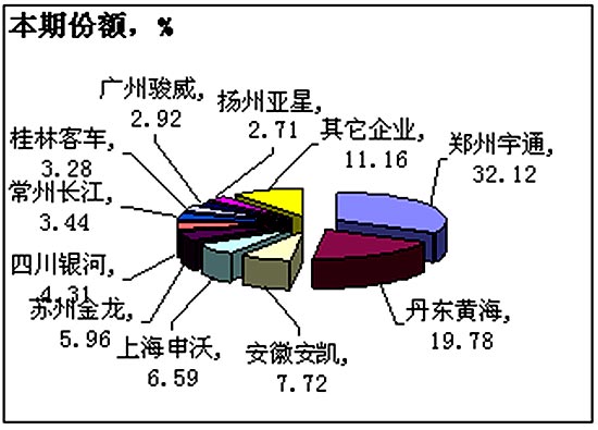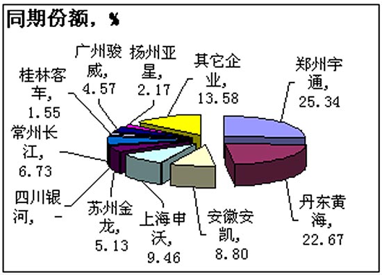 1-8月大客整车累计销量11132辆,同比增长15.29%,市场份额增长较大的企业是宇通、桂客,市场份额下降较大的企业是丹东黄海、申沃。
