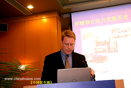 Beaty先生向与会嘉宾介绍混合动力客车产品动力总成