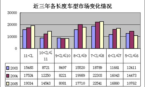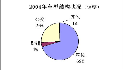 座位客车的市场份额2005年比2004年也下降了1%,销量也下降了4%。说明长途、旅游和团体市场的需求态势进入了一个阶段性的饱和状态。