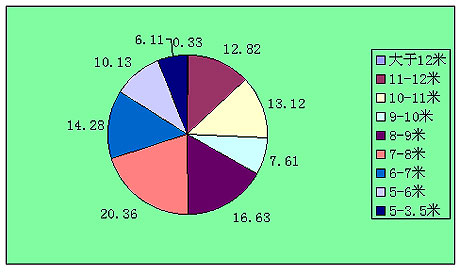 2、05年1~4月8~9米产品所占比例为16.74%,处于第二,06年1~4月份8~9米产品占的比例为16.63%,尽管比例有所下降,但仍然处于第二。
