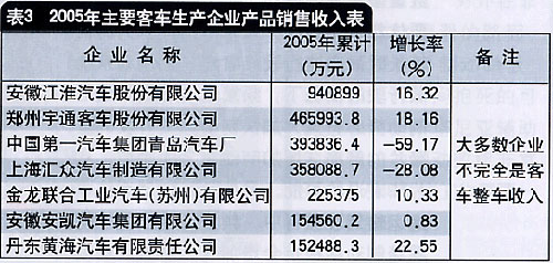 有业内人士认为,征求意见稿明确了客车整车企业的准入门槛,如企业现有客车整车产品的国内、外年销售总额(近三年平均值)A类应不小于10亿元、B类应不小于20亿元。从表3可以看出能够达到此要求的寥寥无几,将带来客车行业的大清理。目前,生产客车的企业有两类,一是进入国家客车整车生产目录的整车企业,二是改装厂。如果正式方案与征求意见稿无较大出入,目前属改装企业的厦门金龙旅行车有限公司、厦门金龙联合汽车工业有限公司将跻身客车整车企业,这正是这两家公司期盼已久的。但一些无法满足条件的客车整车企业将被撤销整车生产资格。