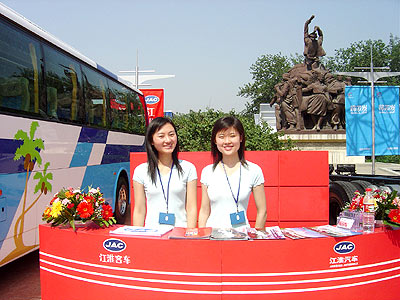 香车美女是每次车展的一大靓点,本次车展也在例外,随着上世纪90年代后期汽车展览经济的兴起,汽车模特租赁费用也扶摇直上,据悉,不少模特早在一年前就和汽车厂家签约。历届车展模特与其他产品模特没有两样,主要是身材高挑、摆个姿势、露脐罩胸、耍点风骚。由于这些模特经过专业礼仪训练,因而笑容呆板、动作简单、应变能力差,对汽车知识知之甚少。针对一般模特存在的问题,安徽江淮客车有限公司独树一帜,加大校企联系,从安徽大学(简称安大)02级生化系和03级外语系各聘来一位在校大学生帮助做好展会接待工作。