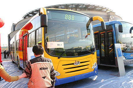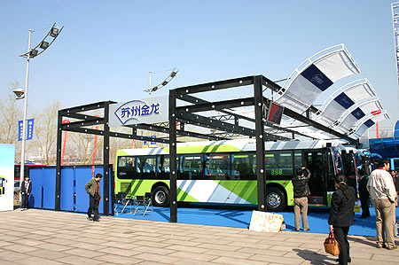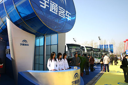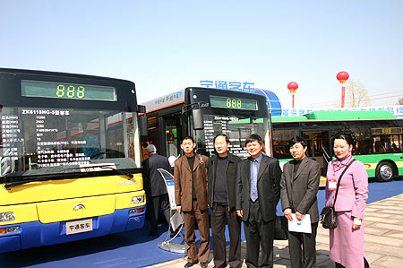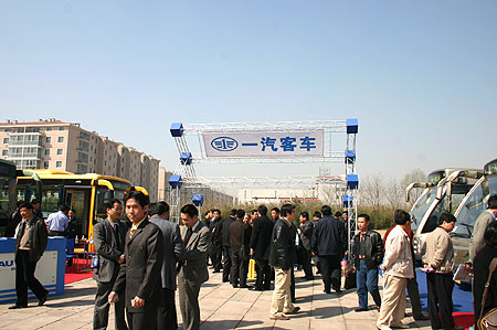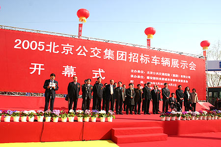 为迎接2008年奥运会,加快发展北京城市公共交通,改善北京大气质量,由北京公交集团主办、建设部科技委城市车辆专家委员会承办的2005年北京公交集团面向全国客车厂家招标车辆展示会于3月30日上午9:30在北京会议中心隆重开幕。