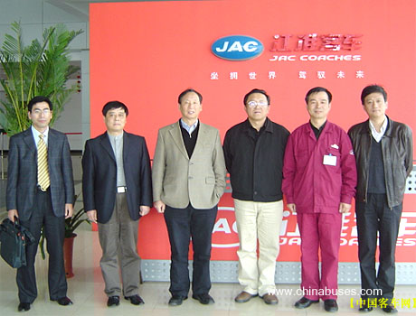 江淮客车总经理李永祥陪同专家参观新型公交产品
