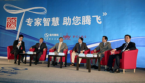 在启动仪式上,中国公路学会客车分会理事长邹虎啸、北京祥龙资产经营有限公司副总裁乔梁、厦门金龙联合汽车工业有限公司副总经理徐向东、厦门金龙联合汽车工业有限公司副总工程师周方明等,就汽车节能减排问题展开对话。