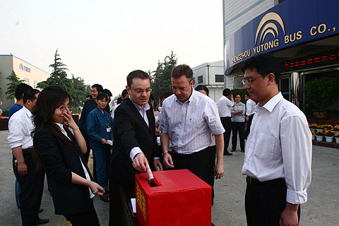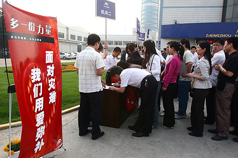 正在宇通工作的IBM顾问专家——美国人raindy,德国人cary获悉宇通员工正在为四川灾区人民捐款,他们也专门来到现场,分别捐献了300元和200元人民币。他们表示,得知中国四川发生大地震,希望自己能在第一时间能为救灾尽一份力。