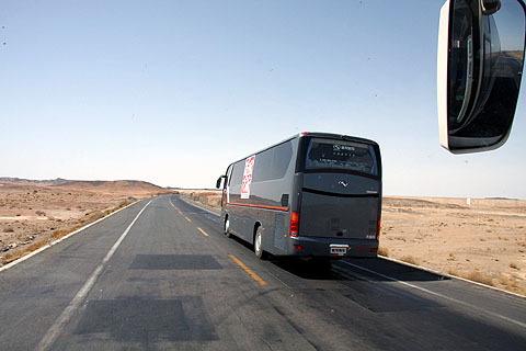 在1号车龙威XMQ6129Y高稳定性、高安全性、高动力性、高舒适性的领航下,车队在晚上7点钟前准时到达哈密市,顺利完成了一天的紧张行程。