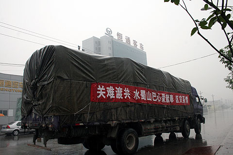 距离 5·12特大地震已经十余天,由于道路情况复杂,物资运输困难,很多灾区都处在物资的极度缺乏当中,物资的缺乏已经对灾区群众的生存和生活造成了威胁。尤其是受到连日阴雨的影响,使原本就气候潮湿的灾区极易造成疾病的传播和蔓延。防潮物资和运输车辆成为灾区急需的物品。