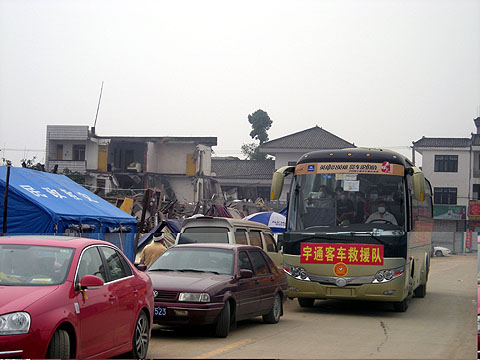 救援队领队:我们接受共青团成都市委委派的任务,往灾区输送大学生或者退伍军人等志愿者以及物资,最近两天,我们的车把医务工作者送往北川、彭州和汉旺镇等重灾区,我们车辆一共出动了15次,运送了600多人。