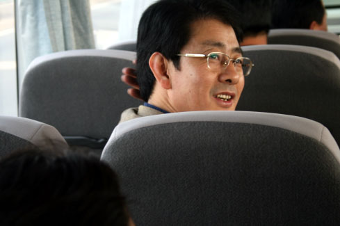 济南长运张纪军副总经理向宇通工作人员了解宇通发动机热管理系统的相关技术原理。