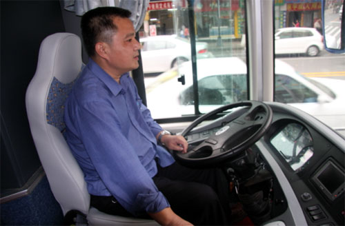 刘建金师傅是惠运集团客运分公司技术组组长,此次他亲自参加"节油精英赛",就是想亲身体验一下宇通客车的操作性和节油能力。当他初赛完成,看到成绩为百公里20.7升时,惊喜之情溢于言表。他介绍说,公司其它品牌的12米车一般油耗都在百公里25-27升,宇通客车的确节油!