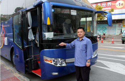 翟师傅对宇通客车相当有感情,因为在公司里他就是驾驶着宇通ZK6898H型客车。他说,宇通客车性能很好,操作起来很轻便,而且质量还很好。他这台ZK6898H从买回来到现在,一年半时间没有出现过任何大毛病,去年获得节油奖,也是有宇通客车的很大功劳,这次"节油精英赛"的冠军,军功章也有宇通客车的一半!说到这里,翟师傅轻拍着"神行剑"ZK6127H,喜爱之情洋溢在他那充满笑容的脸上。