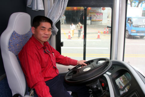 邓师傅所在的博罗联运目前有120多台客车,清一色全部是宇通客车,而且涵盖了相当多的车型,从2003年购买的ZK6898H、ZK6960H、ZK6100H,到后来的ZK6118H、ZK6119H、ZK6120H、ZK6129H,并且在2007年末又赶时髦购买了5台"逍遥剑"ZK6127HA。用邓师傅的话说就是,"博罗联运跟我一样,对宇通客车是情有独钟"。邓师傅还自豪地告诉我,公司所有的宇通客车,他全部开过!他说话的样子真诚而可爱。一种温暖的感动从我心底升腾。