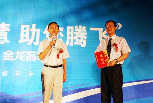 28日下午3点,活动开始前,大金龙首先举行了“爱心接力”捐款仪式。大金龙副总经理徐向东先生代表大金龙向四川地震受灾用户“四川省广元公路运输集团有限责任公司”现场捐款10万元。四川广元运输集团代表财务部部长刘红光先生接受了捐款并向表示感谢。