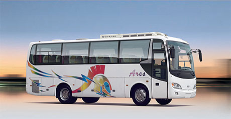 全新造型的9米高档豪华客车,现代A90客车的升级版,拥有韩国现代客车的纯正血统。与A90相比,HK6893K在外观造型、底盘性能和内饰豪华程度上都得到了全面的升级,例如采用现代汽车进口成熟底盘,原配环保型低油耗现代汽车D系列发动机,动力充沛;车身结构宽度加大,行李舱容积也增加许多,车身大量采用成型件,并且经过严格的有限元分析,使整车受力均匀,同时也使车身自重降低,结构更加合理。可提供复合悬架和全气囊配置,舒适性更胜一筹,最高等级为中型高二级配置。在中国定远试验场,HK6893K通过大量的试验,在噪声控制和节油方面表现出色,最高实测时速可达120公里以上,时速90-95码每百公里油耗不到17升,比同类产品低20%左右。