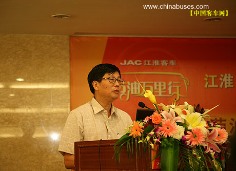 现代能源短缺已为世界所关注,全国客车企业,以全国公交行业为例,现在已有全国公交车辆30万辆,每天运营6000多万公里,全年消耗油料600多万,城市公交行业就要多支出5000万元。去年油的涨价,公交行业又增加了20万元支出。我们把节油工作、作息做好,经济效益社会效益是十分的重大。江淮节油技术具有三大优势,一是江淮底盘的可靠性和经济性;二是引进韩国现代术,通过引进消化吸收这场性,不但性能先进,而且节油;三是江淮人在董事长的领导下,自主创新用于跨越取得了辉煌的一年,江淮客车已拘审与全国客车行业的前面,江淮客车的全国性活动,为全国同行用户专家所称赞。在去年第二届全国客车大赛上,江淮客车荣获“中国客车金奖”、“中国客车最佳节油奖”等称号,此次江淮客车举办节油万里行的大型活动,是体现江淮客车高度的社会责任感,将节油提高,提升到公众的跟前,这不仅涉及到客车制造业本身技术的追求,还需要得到全行业的共同关注和共同的努力,中国行业专家有关部门的权威人士,客运企业制造企业的技术人员和自身认识的共同写照,包括优秀的技术管理人员和优秀的驾驶人员,共同的合作,把节油活动搞好,将节油技术向公众推广。