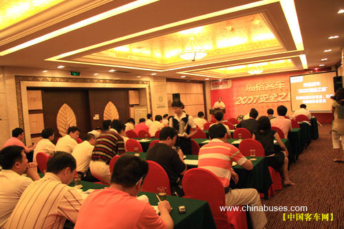 海格客车技术总监曹建华在活动中,向湖南地区客户详细介绍了SCANIA· HIGER