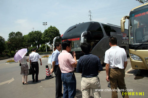 苏州金龙销售公司副总经理庹新林陪同客户参观海格客车
