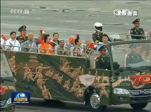 阅兵是一个国家极其隆重的大事,更是国威、军威及民族精神的体现!2015年9月3日,为纪念中国人民抗日战争暨世界反法西斯战争胜利70周年,我国举行隆重的大阅兵仪式。除了高精尖武装力量备受瞩目之外,本次阅兵最大的亮点就是首次组织了抗战老兵方队参阅,而阅兵仪式上老兵方队接受检阅时所乘坐的正是敞篷版的安凯宝斯通客车。