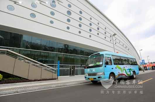 金龙新能源车辆接送运动员为福州再添“青运蓝”