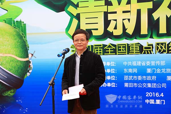 启动仪式上,活动主办方代表、厦门金龙旅行车有限公司常务副总经理彭东庆表示:“此次采访活动,不单是宣传福建这个全国唯一一个水、空气、生态环境全优的省份,更是传递节能环保、绿色出行的理念。金旅很高兴能参与这个活动。”