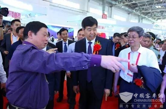 交通部科学研究院党委书记周晓航、中国公路学会客车分会秘书长胡选儒、武汉市新能源汽车协会秘书长叶向东,扬子江汽车集团副总经理张西给第二代在线充发布剪彩。