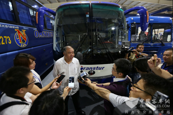 在宇通展台,工作人员介绍,此次展示的3款车型均为拉美用户量身打造。其中ZK6122H9是在宇通12米系列成熟车型的基础上根据海外客运、旅游及团体用户的多种需求进行改进优化推出,造型大气、庄重,配备全铝轮辋和新型空调出风口、新型行李架支腿及无外露螺钉、无粘接内饰,立显尊贵与高档,可帮助客运企业树立高档、服务优质的形象。