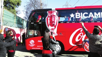 智利的足球文化绝对是货真价实的硬核南美范儿。最近的智利,刚刚问鼎美洲杯,可谓是风光无两,宇通客车也已连续两年承担智利国家队的乘务服务。图为刚刚获得美洲杯冠军的智利国家足球队乘坐宇通车凯旋。