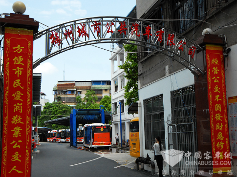 梅州公交公司院内停满了等待发车的C08