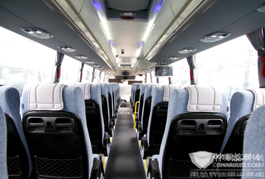 车辆开动后,令人倍感熨帖的细节强化了舒适感:腿部空间宽敞有如高铁座位;刹车和转弯时,因为应用了同类其他车型上鲜有的液力缓速器,让人几乎感受不到任何顿挫和眩晕感觉。