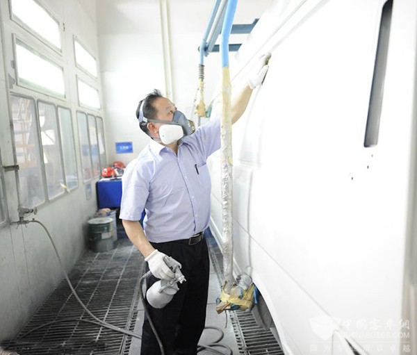 岑小云,金旅涂装部修饰班的班长。二十多年来,从风华正茂步入金旅,到伴随金旅品质飞跃,他一步步的成长几乎与公司同龄。“涂装修饰并不是简单的机械动作,人的主观能动性占据更大的部分。”岑小云说。对于客车这一个性化需求的产品,复杂的彩条和细节修饰都不能依赖机械,只能凭借工匠的技艺。使用空气喷枪时,要掌握好气压,气压大了表面会粗糙,气压小了表面会形成颗粒。岑小云把自己称为“汽车美容师”,“精细化的修饰,每一项内容都要追求完美”正是他所理解的“工匠精神”。