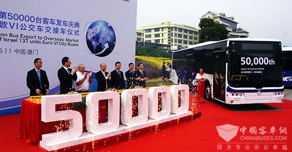 金旅第50000辆客车出口海外发车庆典暨以色列137辆欧VI公交车交接车仪式