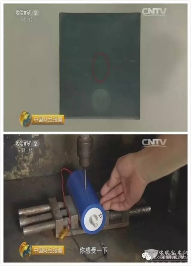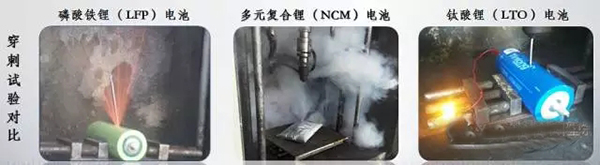 “钛酸锂”电池经受穿刺试验依旧安然无恙,而普通电池通过穿刺试验,出现瞬间短路,发热、冒烟、燃烧甚至爆炸。