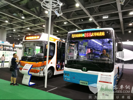 参展车型中,中车时代电动C08E——8.2米纯电动被称为城市“全能王”。由于采用了短前、后悬设计,与10米级公交车轴距相当。超长轴距使得这款8米中型巴士,摇身变成了接近载客量可达10米级大巴,这样即便是在营运高峰期,它也能轻松应对。C08E外观明亮的色彩,给人带来活泼时尚的感觉。别看它身材小,因为采用了电机加行星减速器驱动装置,整车动力强劲,爬坡能力强,快充20分钟,即可保证150km的续驶里程。