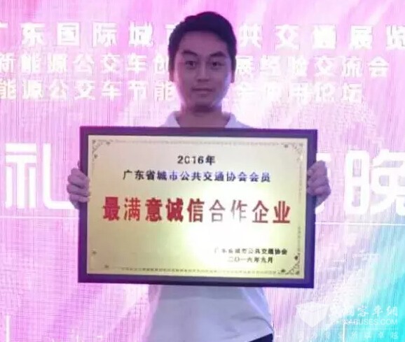扬子江获广东城市公交“最满意诚信合作企业”奖