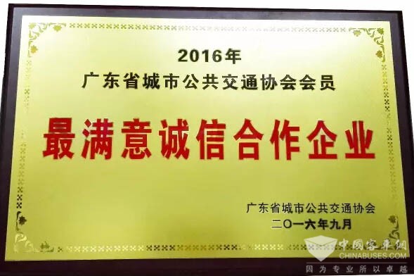 银隆获广东城市公交 “最满意诚信合作企业”称号