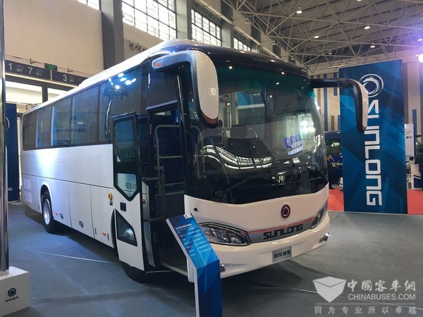 另一款参展的SLK6903公路客车是申龙2016年基于全新3系列平台推出的新品。该车型采用国际标杆的全三维研发手段,涵盖结构、管线路、有限元、人机四大要素,有效控制结构重量及结构稳定性。整车采用全承结构并启用全新的骨架结构,使整车更具轻量化,在综合路况下油耗更低,有效提高车辆的节能率,为客户节省了更多的运营成本。