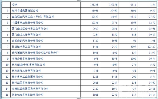 总销量中,大型客车销量45170辆,同比下降8.14%,中型客车销量53772辆,同比增长27.72%,轻型客车销量36303辆,同比下降21.22%。