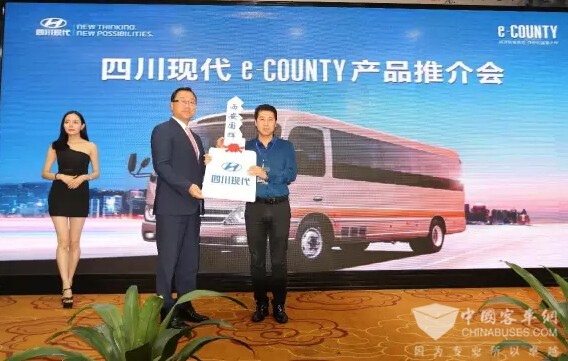 虽然e-COUNTY新品刚刚上市,却已经未售先火。早在新品上市前,陕西杨凌迅达客运公司就预订了e-COUNTY新品。在本次发布会上,四川现代还举行了盛大的交车仪式,将e-COUNTY正式交付给了杨凌迅达客运。通过新车的交付,不仅彰显了用户对e-COUNTY的极大信赖,更说明了e-COUNTY凭借亲民路线和优秀性能,已经打响了区域市场战。