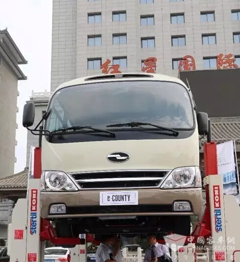 在揭幕式上,e-COUNTY在动力、外观、内饰、安全性能等方面的卓越表现得到了媒体及客户和一致好评,到场的一些客运公司、旅游公司等客户代表对该款新车均表现出了极大的兴趣。现场中,四川现代还针对e-COUNTY的一些细节进行了详细理解。