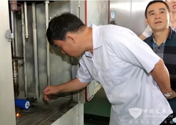 领导们现场观看银隆钛电池穿刺试验并咨询其优越性能