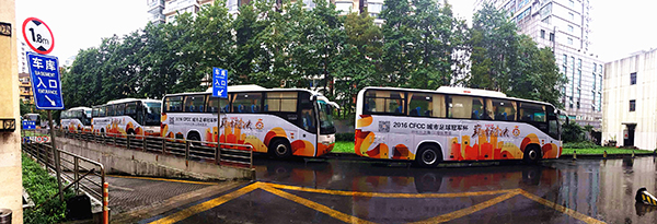 纯白大气的轻量化车身、热情洋溢的金色波浪,泼墨写意的“巅峰对决”四个大字,构成了此次城市足球冠军杯专属足球巴士的靓丽外观。“CFCC城市足球冠军杯代表的不仅仅是高水准的比赛,还有当地的足球文化和人文气息。球队大巴就是很好的载体。“本届城市足球冠军杯承办方上海华骋体育文化传播有限公司媒介运营负责人陈宸告诉记者。