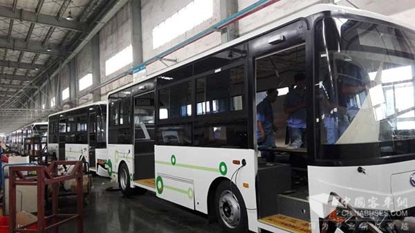 进入厂区,映入眼帘蓝白相间的是已经完工的江苏的车辆,走进车间,还有部分车辆在紧锣密鼓地进行收尾工作;紧挨着正在进行内装工作的白底绿圈的是山西各县的车辆;继续行走,看到一辆辆绿色的车子,那是号称“牛郎织女 文化之乡”的车辆,已经完工,正在试车。据生产部部长管少蛟介绍说,准备车间现在正在制作的是山东的SR6101BEVG新能源公交的前期下料制件;底盘车间现在正在制作的是山西的SR6810BEVG新能源公交的底盘装配;焊装车间现在正在制作的是山东的SR6810BEVG新能源公交和东北的SR6706C4考斯特车的骨架焊接;油漆车间现在正在制作的是广西的SR6810BEVG新能源公交的车身喷涂工作;总装车间现在正在制作的是江苏和山西各县的SR6810BEVG新能源公交的内装及收尾工作。