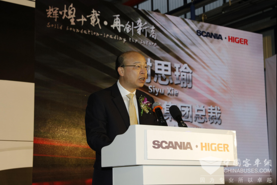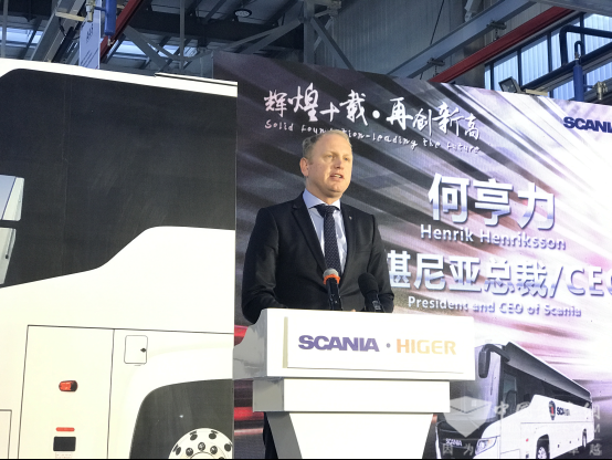 “回首过去十年,斯堪尼亚与海格客车同舟共济、砥砺前行,取得了丰硕的成果。展望未来,双方仍将一起为中国以及全球客户提供更高标准的产品和服务。期待着令人兴奋的下一个十年的到来。祝愿我们的合作取得最大的成功。” 斯堪尼亚总裁/CEO何亨力在仪式上表示。