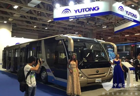 在本届展会,宇通共带来3款车型参展,分别是机场摆渡车、无障碍接驳车、豪华房车。