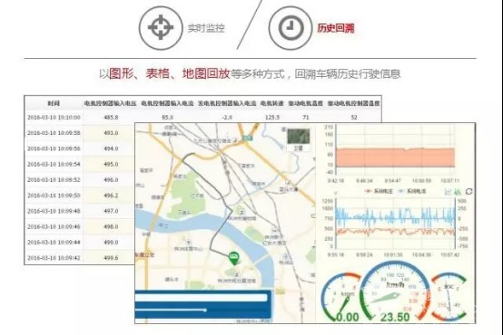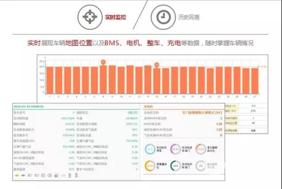 车辆远程故障报警机制为车辆运行时刻提供保障,异常预警机制和管理功能实时、不间断地自动采集BMS、电机、控制器、电池等状态数据,通过自动计算和分析,判断这些重要部件的安全状态,时刻避免安全事故的发生。