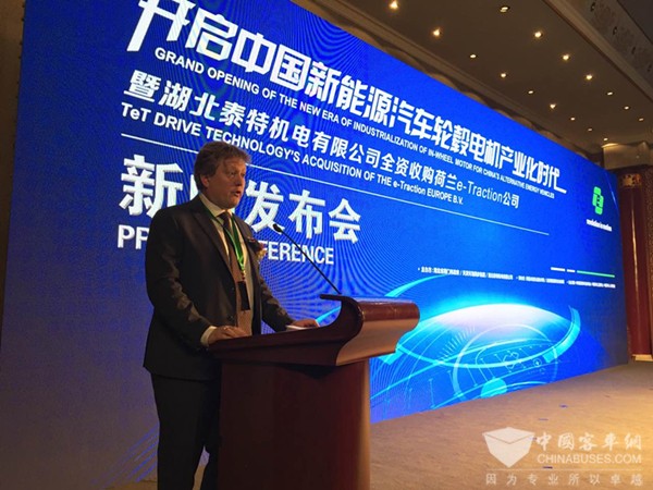 2016年9月份,湖北泰特机电通过多轮考察、谈判,最终与欧洲最大的新能源汽车轮毂电机生产商——荷兰e-Traction Europe B.V公司达成并购意向。2016年9月26日,在荷兰驻中国大使馆内,荷兰基础设施与环境部长舒尔茨女士见证下,湖北泰特与荷兰e-Traction Europe B.v公司进行了100%股权的收购签约仪式。