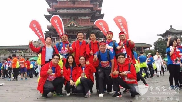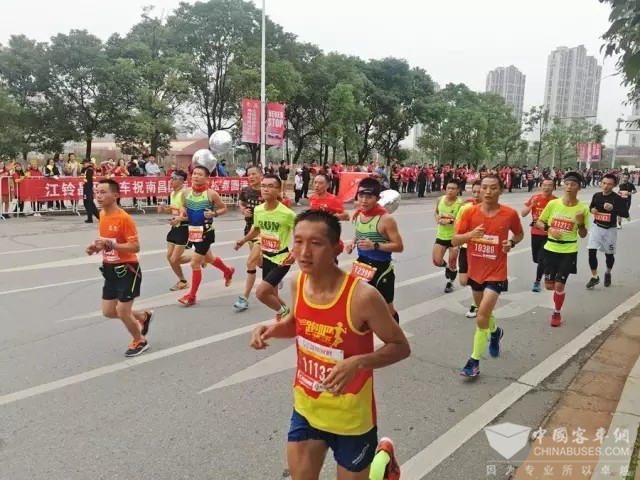 引人注目的是,在这声势浩大的长跑队伍中,有一个本届大赛最大的跑团,由江铃集团邱天高董事长领跑的江铃跑团,晶马公司李吉胜总经理、施明顺常务副总经理和公司17名干部和职工,跟随江铃跑团参加了迷你马拉松赛。