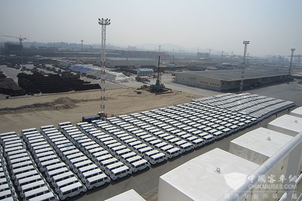 每到船期,厦门现代码头上都会停满这样的白茫茫一大片金龙轻客。2011年发运的1300辆埃及轻客,至今仍在商用车界保持着“单船、单批次”发运纪录,被国内外媒体广泛报道。