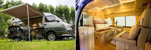 金威旅居车主打经济实用,亲民的价格加上蓝牌C1照即可驾驶,令不少客户动心。该车乘客区前方是会客区和睡卧区,办公桌椅可折叠成舒适的双人床,中部安装可接收卫星信号液晶电视,尾部带有功能齐全的卫生间和厨房,精妙的设计使得金威房车“麻雀”虽小,却别有洞天。
